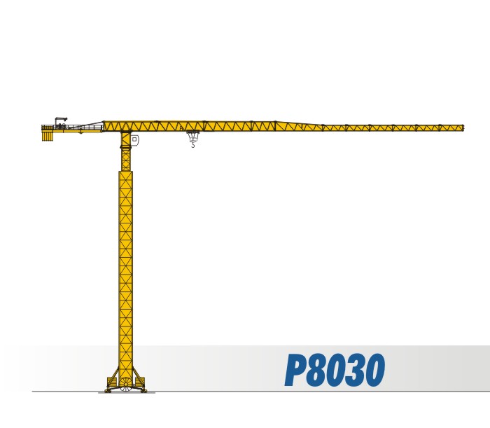 臂長(zhǎng)組合:80m 75m 70m 65m 60m 55m 50m 端部吊重:1.7t(80m)/3.0t(80m) 最大吊重:25t(13.9m)